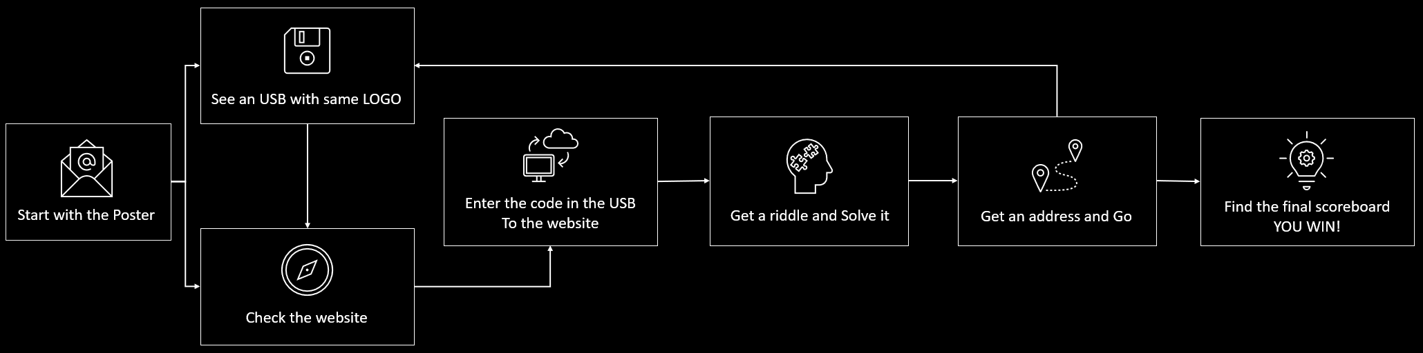 Also, to connect reality and the internet world, a website is necessary. We hide the code riddle inside the USB drives and the key to translating the riddle is the website. As a result, the riddle connects the USB drives and the website, the reality, and the internet together.